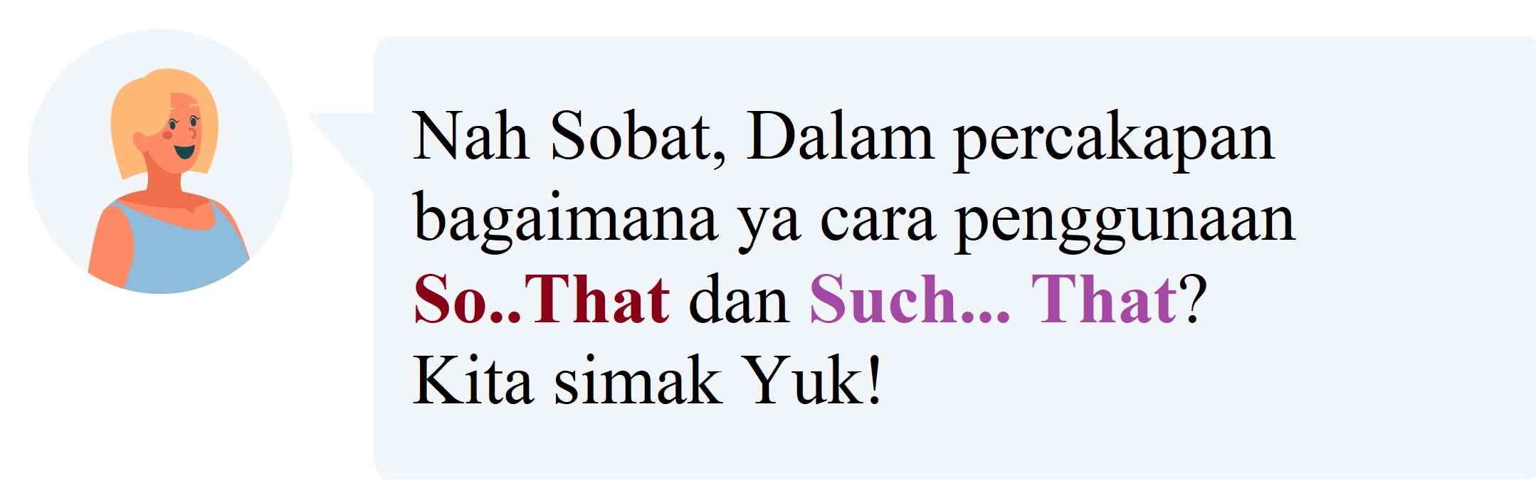 Dalam percakapan tersebut, kita dapat memerhatikan penggunaan so…that… dan such…that…. di sebuah percakapan.