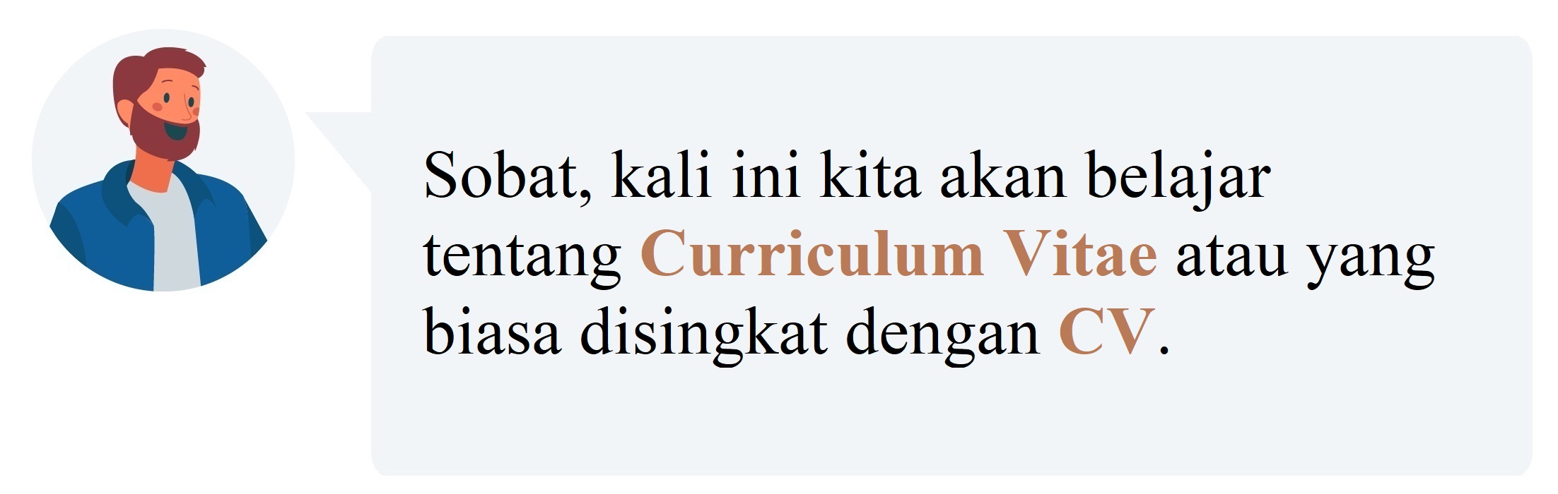 Menurut Cambridge Dictionary, curriculum vitae adalah sebuah deskripsi singkat tentang pendidikan, kualifikasi, pekerjaan sebelumnya, dan terkadang juga minat pribadimu, yang kamu kirimkan ke pemberi pekerjaan saat kamu mencoba untuk mendapatkan pekerjaan.
