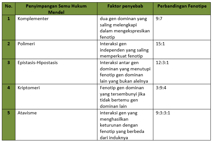 Macam-Macam Penyimpangan Semu Hukum Mendel