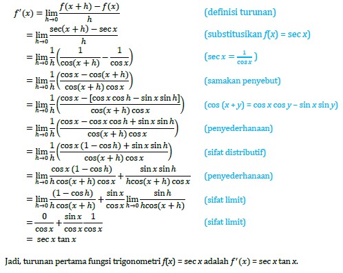 Turunan fungsi secan dapat ditentukan dengan cara berikut;