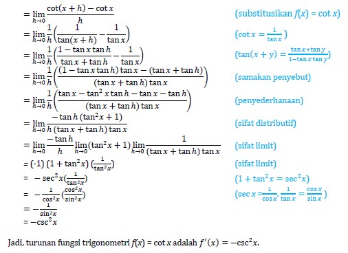 Turunan fungsi cotan dapat ditentukan dengan cara berikut;