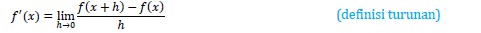 Buat sobat pintar yang lupa apa itu turunan, akan sedikit dijelaskan konsep umum dari turunan suatu fungsi.