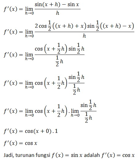Turunan fungsi sinus dapat ditentukan dengan cara berikut:
