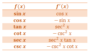 Berdasarkan penjabaran di atas, turunan dasar dari fungsi trigonometri, yaitu: