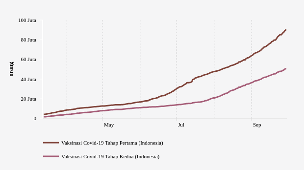 Gambar diatas merupakan grafik perkembangan warga Indonesia yang sudah di vaksinisasi Covid-19 baik tahap 1 atau tahap 2 sampai dengan pertengahan bulan september 2021. Menurut sobat, berapa rata-rata warga Indonesia yang memperoleh vaksin tahap 1 setiap bulannya? Dan berapa rata-rata warga Indonesia yang memperoleh vaksin tahap 2 setiap bulannya? Kedua pertanyaan tersebut dapat kita jawab dengan memahami statistika lhoo, Sobat!