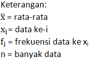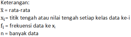 Suatu data disajikan dalam bentuk tabel distribusi frekuensi, maka rumus rata-rata dapat dirumuskan sebagai berikut: