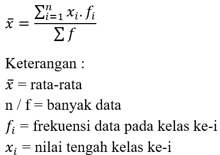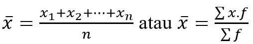 Rata-rata suatu data dapat diperoleh dengan menjumlahkan seluruh data kemudian dibagi dengan banyak datanya. Secara matematis, dapat dirumuskan: