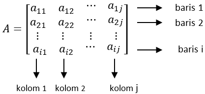 Amxn artinya matriks A mempunyai baris sebanyak m dan mempunyai kolom sebanyak n.