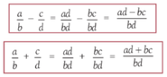 Penjumlahan dan Pengurangan bilangan rasional harus disamakan terlebih dahulu penyebutnya.