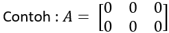 - Matriks nol, yaitu: matriks yang seluruh elemennya bilangan nol.