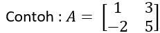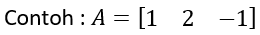 - Matriks baris, yaitu: matriks yang hanya memiliki satu baris atau berordo 1 x n.