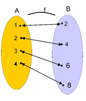 Aturan yang memasangkan anggota himpunan A dengan anggota-anggota himpunan B disebut aturan fungsi f.