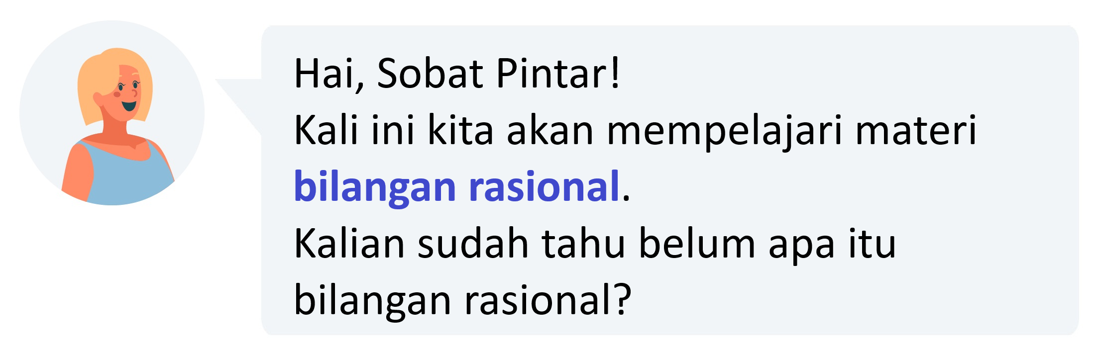 Dalam rangkaian dua bilangan bulat, terdapat sebuah bilangan lain yang tidak termasuk dalam kategori bilangan bulat. Bilangan itu disebut Bilangan Rasional. Sobat Pintar tau nggak apa definisi bilangan rasional? Bilangan rasional merujuk pada suatu bilangan yang dapat diwakili dalam bentuk pecahan biasa (a/b), dan jika dinyatakan dalam bentuk desimal, angkanya akan berhenti setelah sejumlah digit atau akan membentuk pola pengulangan.