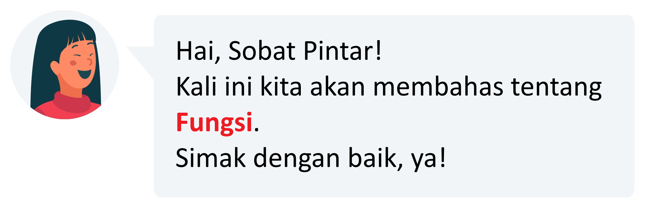 Fungsi (pemetaan) adalah relasi dari himpunan A ke himpunan B, jika terdapat setiap anggota berpasangan tepat satu anggota himpunan B. Semua anggota himpunan A disebut domain (daerah asal), semua anggota himpunan B disebut kodomain (daerah kawan) dan hasil dari pemetaan himpunan A dan himpunan B adalah daerah hasil (range). Sama seperti relasi, fungsi juga dapat dinyatakan dalam bentuk diagram panah, diagram kartesius, dan himpunan pasangan berurutan