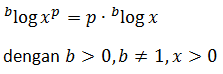 Sifat perpangkatan logaritma dapat diturunkan menjadi beberapa sifat berikut: