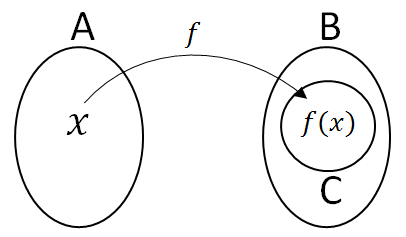 Jika f adalah suatu fungsi dari A ke B, maka himpunan A disebut domain (daerah asal) dan himpunan B disebut kodomain (daerah kawan). Sedangkan himpunan B yang berpasangan (himpunan C) disebut range (hasil) fungsi f.