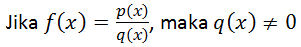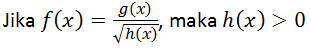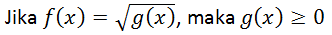 - fungsi pecahan, dimana penyebutnya merupakan fungsi lain dalam bentuk akar