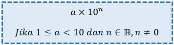 Notasi ilmiah atau yang bisa disebut juga dengan bentuk baku dari suatu bilangan dapat dituliskan secara singkat dalam bentuk: