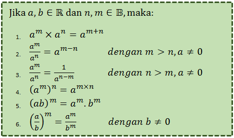 Ketika melakukan operasi aljabar pada bilangan berpangkat bilangan bulat, kita dapat menggunakan sifat-sifat berikut:
