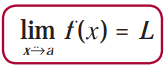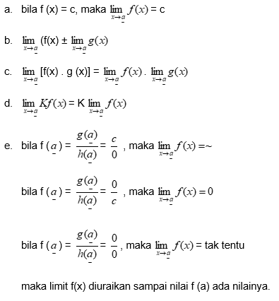 di jabarkan sebagai "limit fungsi f(x) pada saat x mendekati a sama dengan L".