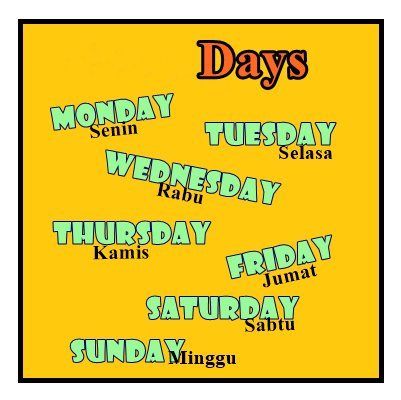 Poster di atas merupakan bahasa Inggris untuk masing-masing nama hari.