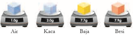 massa jenis = 16 gram/8 cm3 = 2 g/cm3.