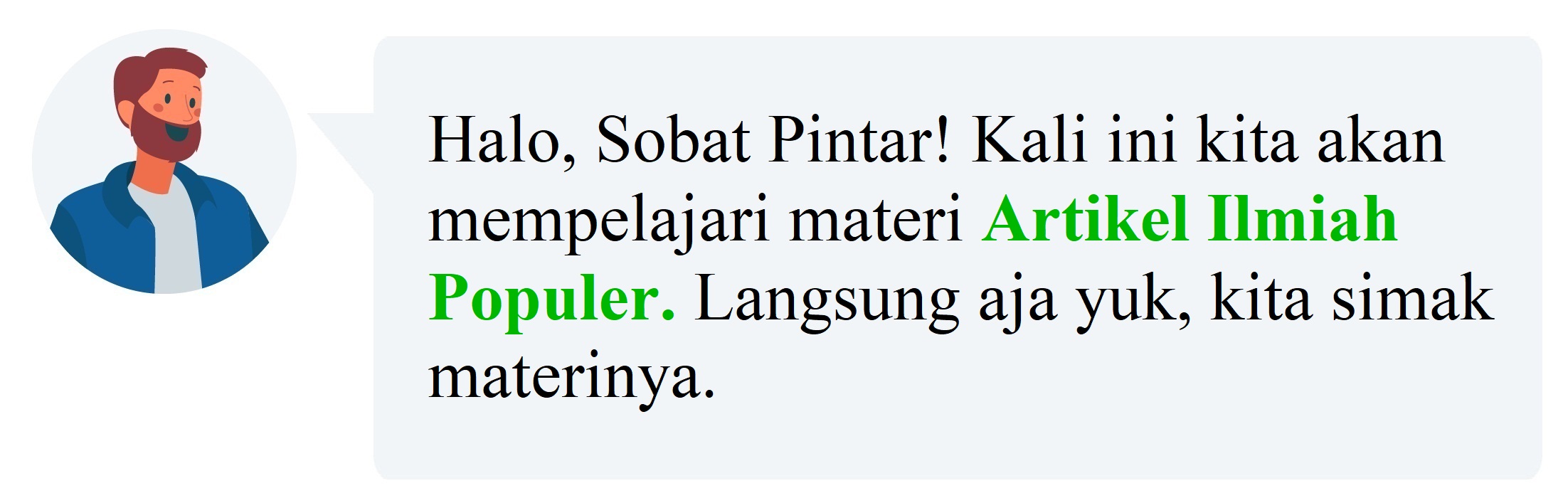 Sobat Pintar, pernahkah kalian membaca koran atau majalah yang di dalamnya terdapat artikel-artikel tentang lingkungan, kehidupan sebuah suku, atau hasil penelitian tentang hewan dan tumbuhan? Sering kali artikel tersebut disajikan dengan gambar dan grafik untuk melengkapi informasinya. Artikel ilmiah populer biasanya dimuat dalam media cetak dan elektronik. Lalu apa sebenarnya artikel ilmiah populer itu?