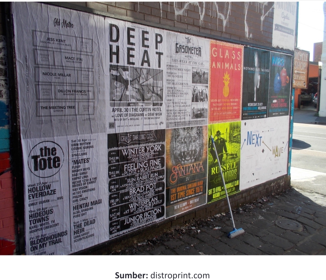 Pengaplikasiannya hanya dengan menempelkan poster di tempat-tempat yang tergolong strategis. Banyak poster yang ditempel di jalan-jalan karena di jalan dinilai merupakan tempat strategis yang sering dilewati banyak orang.