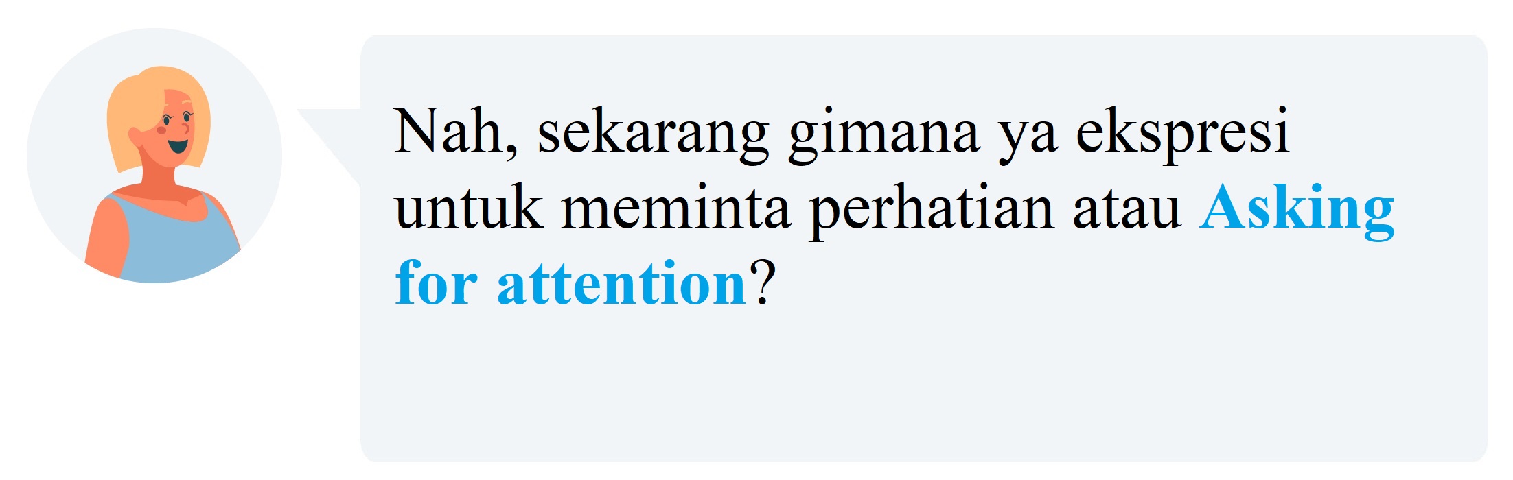 Ekspresi yang bisa digunakan untuk asking for attention contohnya seperti ini sobat!