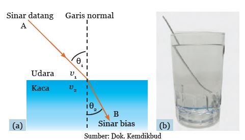 Cahaya akan dibiaskan ketika melalui dua medium yang memiliki kerapatan optik yang berbeda. Kecepatan cahaya akan menurun saat dari udara memasuki air atau medium yang lebih rapat. Semakin besar perubahan kecepatan cahaya saat melalui dua medium yang berbeda, akan semakin besar pula efek pembiasan yang terjadi. Namun, pembiasan tidak akan terjadi saat cahaya masuk dengan posisi tegak lurus bidang batas kedua medium.