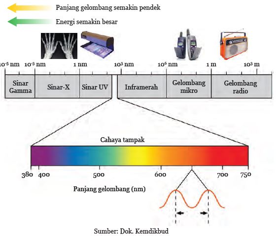 Bayangkan saat ini kamu sedang berdiri di tepi pantai. Pada saat itu kamu melihat ombak yang sangat besar sedang melaju menuju ke arah kamu. Deburan ombak tersebut hanya memindahkan sejumlah energi dengan memindahkan mediumnya (air laut) karena angin. Hal ini dibuktikan dengan terdengarnya suara ombak (energi gerak menjadi bunyi). Berbeda dengan gelombang laut, cahaya dapat mentransfer energi dari satu tempat ke tempat lainnya tanpa menggunakan medium. Gelombang cahaya terbentuk karena adanya perubahan medan magnet dan medan listrik secara periodik, sehingga merupakan gelombang elektromagnet.