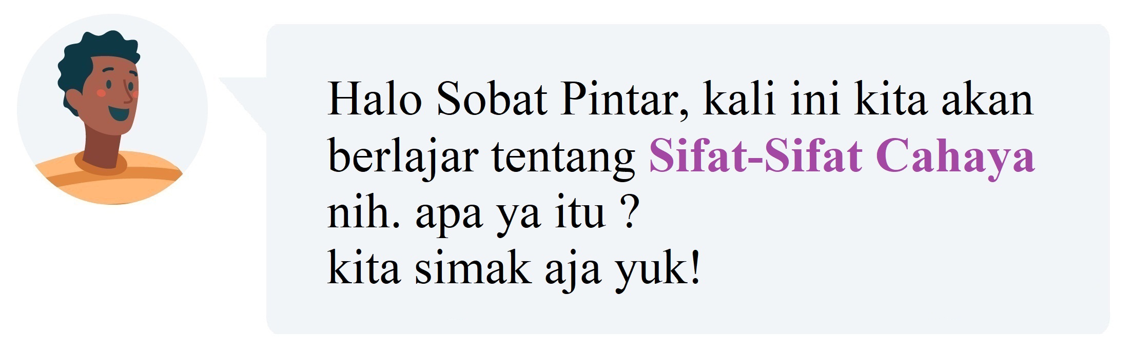 Sobat pintar, kamu perlu mengetahui dan memahami sifat-sifat cahaya agar dapat mengenali cahaya. Cahaya memiliki beberapa sifat, yaitu merambat lurus, dapat dipantulkan, dapat dibiaskan, dan merupakan gelombang elektromagnetik.