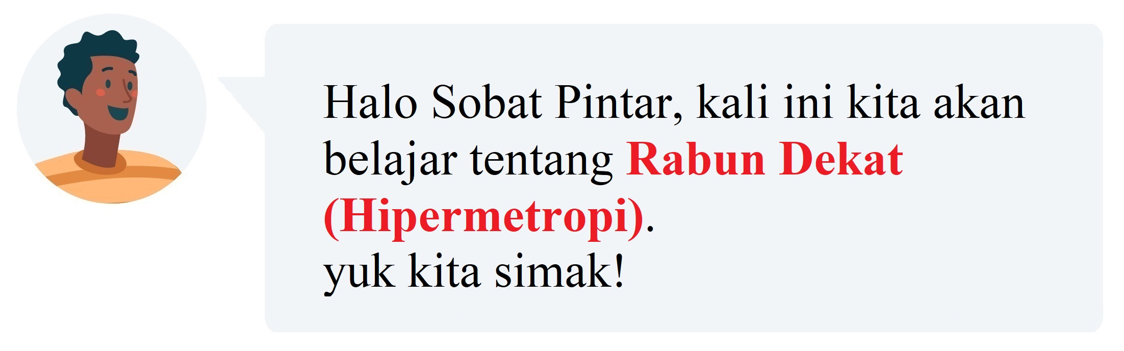 Seorang penderita rabun dekat tidak dapat melihat benda yang berada pada jarak dekat (± 30 cm) dengan jelas. Hal ini karena bayangan yang terbentuk jatuh di belakang retina, sehingga bayangan yang jatuh pada retina menjadi tidak jelas (kabur). Kacamata positif dapat menolong penderita rabun dekat, sebab lensa cembung mengumpulkan cahaya sebelum cahaya masuk ke mata. Dengan demikian, kornea dan lensa dapat membentuk bayangan yang jelas pada retina.