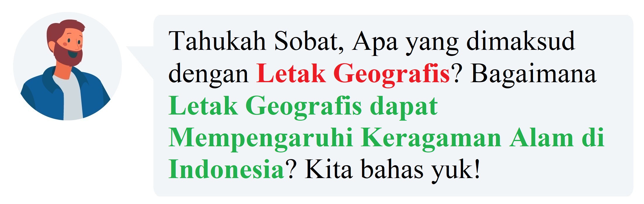 Letak geografis suatu wilayah memiliki pengaruh langsung terhadap keragaman alamnya karena berbagai faktor seperti iklim, topografi, dan interaksi antara ekosistem yang berbeda.