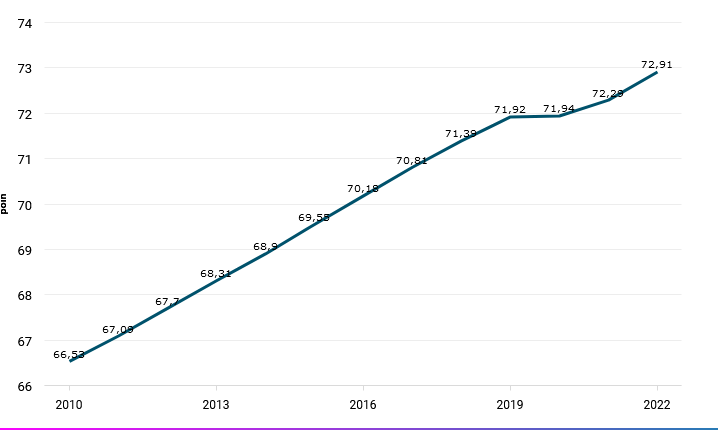 Kenaikan IPM pada 2022 hampir menyamai rata-rata pertumbuhannya sebelum pandemi Covid-19 melanda. Pada 2010-2022, rata-rata pertumbuhan IPM per tahun mencapai 0,77%. Dengan skor tersebut, IPM Indonesia sudah masuk status tinggi.