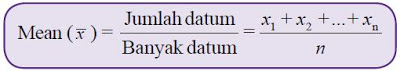 Jika suatu data terdiri atas n datum, yaitu x1, x2, ..., xn, mean dari data tersebut dirumuskan sebagai berikut