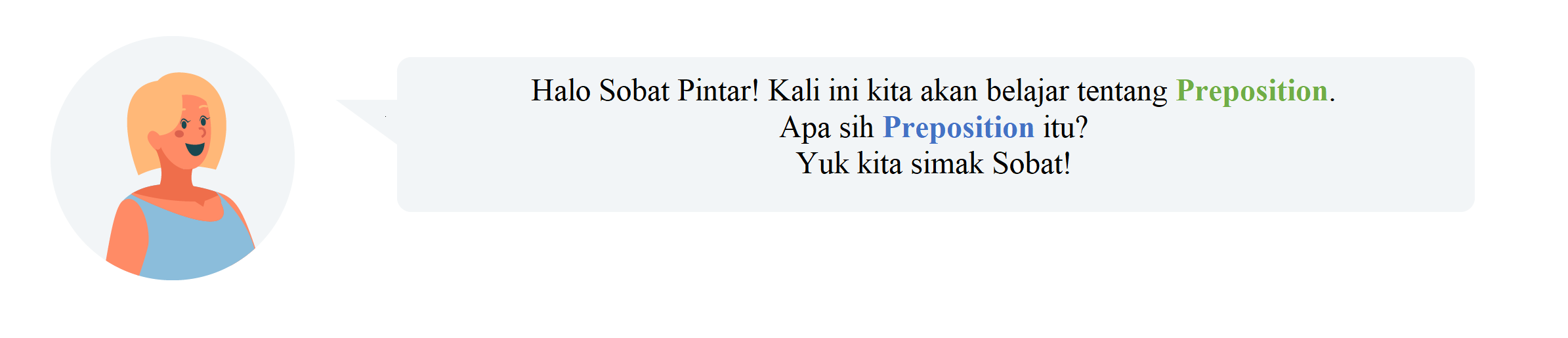 Hallo sobat Pintar!, sekarang kita akan belajar tentang "Preposition"