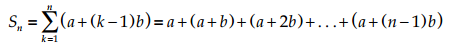 Jumlah suatu deret aritmetika dan geometri (Sn) dapat ditulis dalam notasi sigma, yaitu: