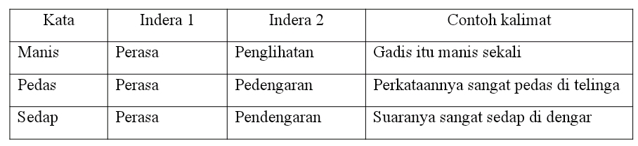 Sinestesia adalah proses pergeseran makna yang berkaitan dengan konteks alat indera sebagai penerimanya.