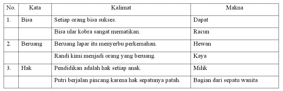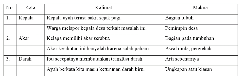 Istilah yang digunakan untuk menyatakan kata yang memiliki banyak makna. Makna ini bergantung pada konteks kalimat atau pola kalimat.