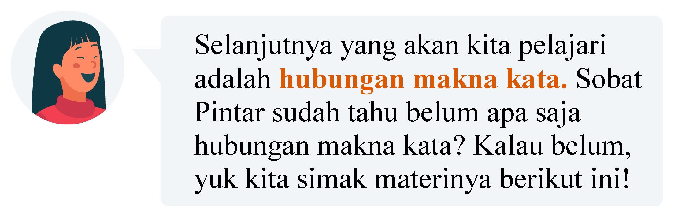 Selanjutnya kita akan mengenal hubungan makna kata!