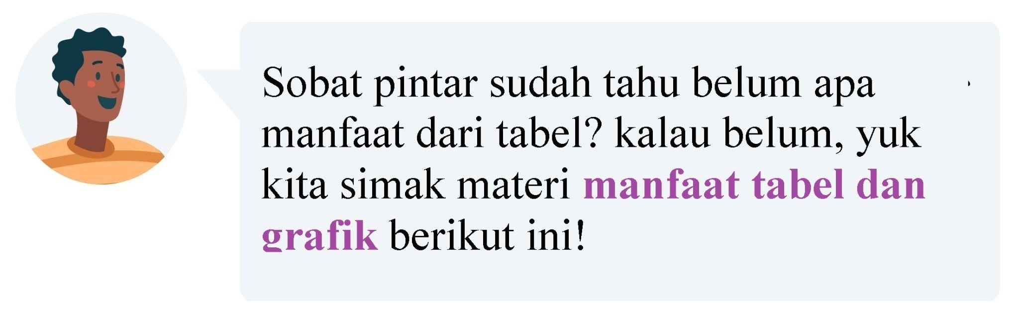 Nah, itulah sobat manfaat dari tabel dan grafik. Yuk kita lanjut ke materi berikutnya!