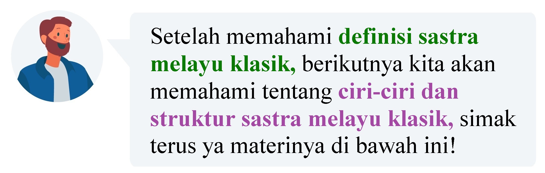 Sobat, di bagian ini kita akan belajar memahami ciri-ciri dan struktur dari Sastra Melayu Klasik!