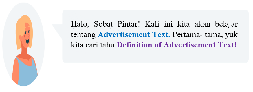 Teks iklan adalah jenis teks yang mengiklankan produk dan layanan. Advertisement Text is a type of text that advertises products and services.