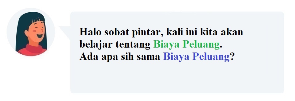 - Bila Ayunda telah memutuskan untuk bekerja sebagai karyawan di sebuah pabrik maka Ayunda akan kehilangan kesempatan untuk bekerja sebagai karyawan mall. Biaya peluang dari kasus ini adalah bekerja sebagai karyawan mall.