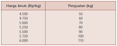 Coba perhatikan Tabel di bawah ini, mengenai daftar penawaran jeruk Pak Heri. Kurva penawaran dapat dibuat berdasarkan tabel tersebut.