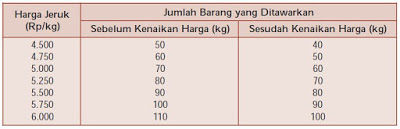 Sehingga ketika diperkirakan harga di masa depan naik, maka penjual akan mengurangi jumlah barang yang dijualnya. Tabel berikut ini yang akan menunjukkan jumlah jeruk yang ditawarkan Pak Heri sebelum dan sesudah kenaikan harga.