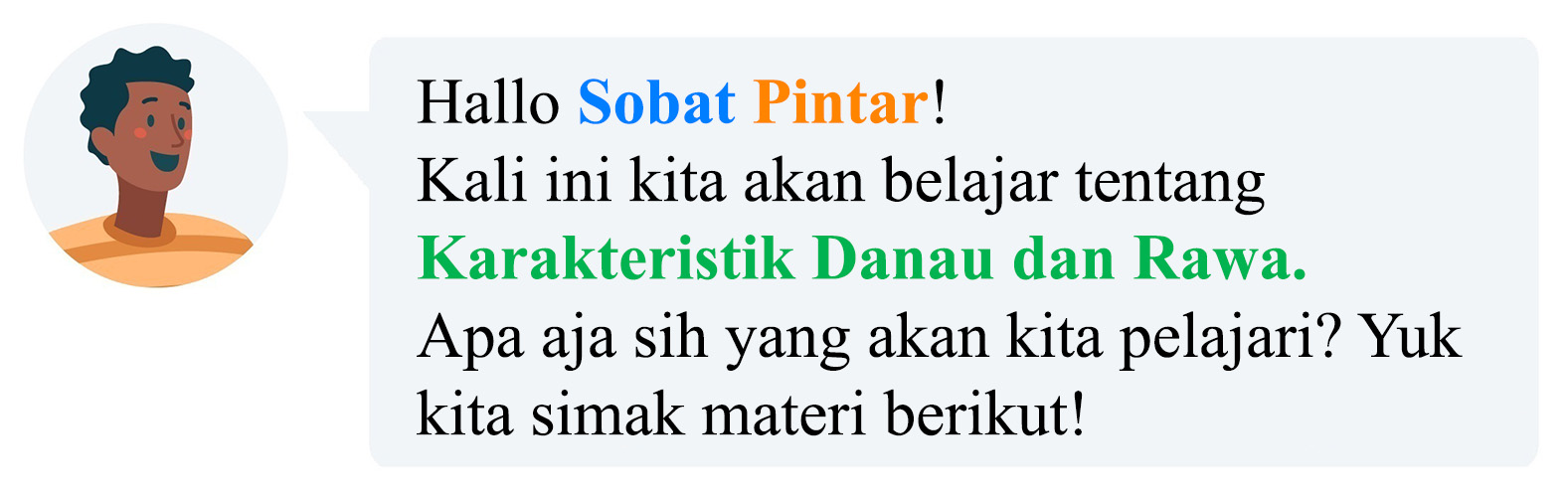 Danau, yaitu cekungan atau kubangan di permukaan bumi yang terisi air. Danau mendapat air dari sungai, curah hujan, mata air, dan air tanah, sedangkan pengalirannya dapat terjadi karena penguapan, perembesan ke dalam tanah, dan pengaliran.