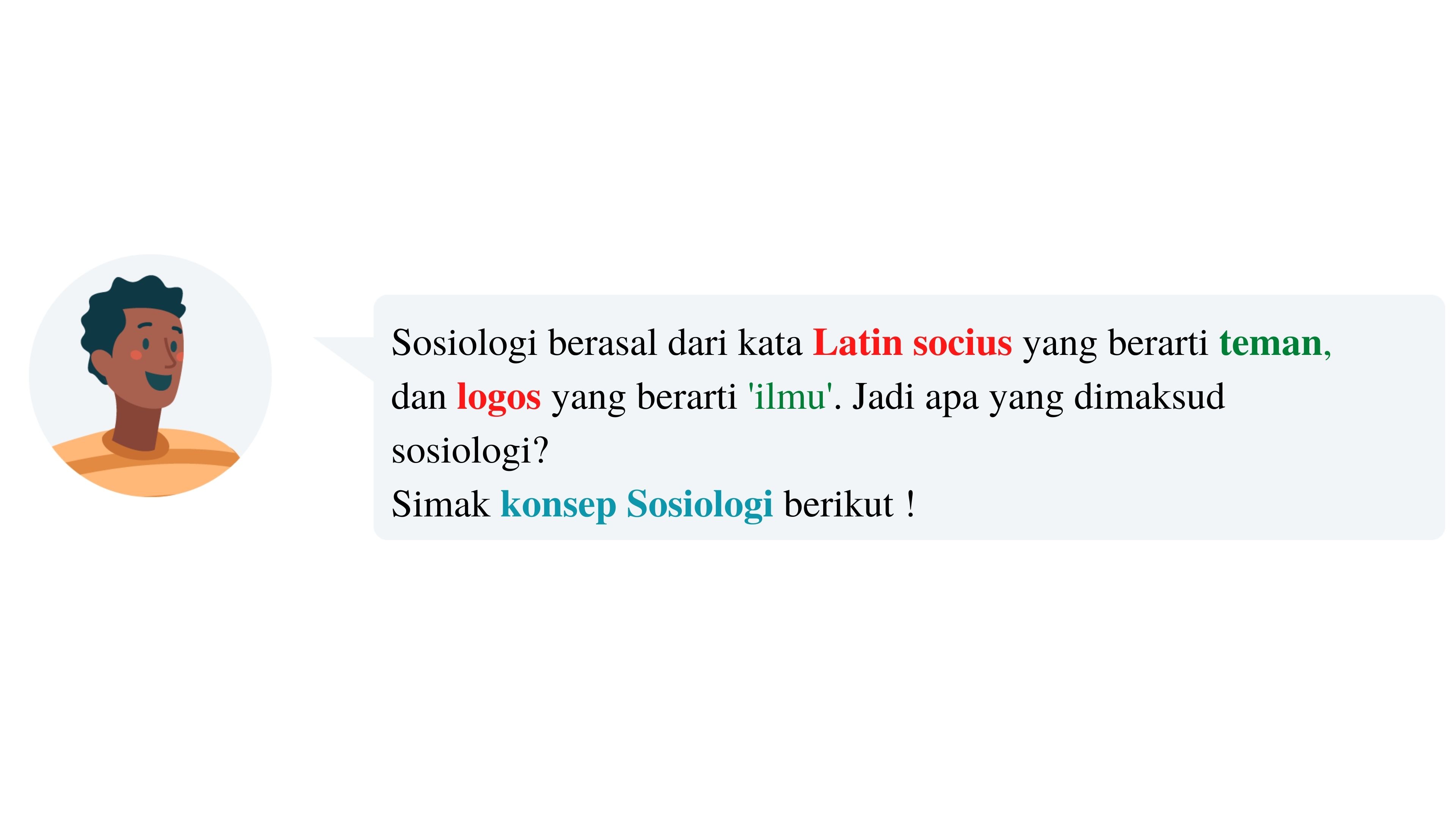 Istilah sosiologi secara etimologis berasal dari kata Latin socius yang berarti teman, kawan', dan logos yang berarti 'ilmu'. Jadi apakah yang dimaksud sosiologi? Merujuk pada arti dua kata tersebut, maka sosiologi berarti ilmu tentang teman. Dalam arti yang lebih luas, sosiologi diartikan sebagai ilmu yang mempelajari interaksi manusia di dalam masyarakat. Sosiologi bermaksud untuk mengkaji kejadian-kejadian dalam masyarakat, yaitu persekutuan manusia yang selanjutnya berusaha untuk mendatangkan perbaikan dalam kehidupan bersama. Sosiologi sebagai ilmu mulai dikenal sejak abad ke-19 dengan melepaskan diri dari filsafat.