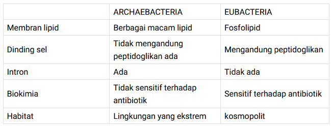 Berikut merupakan perbedaan Archaebacteria dan Eubacteria: